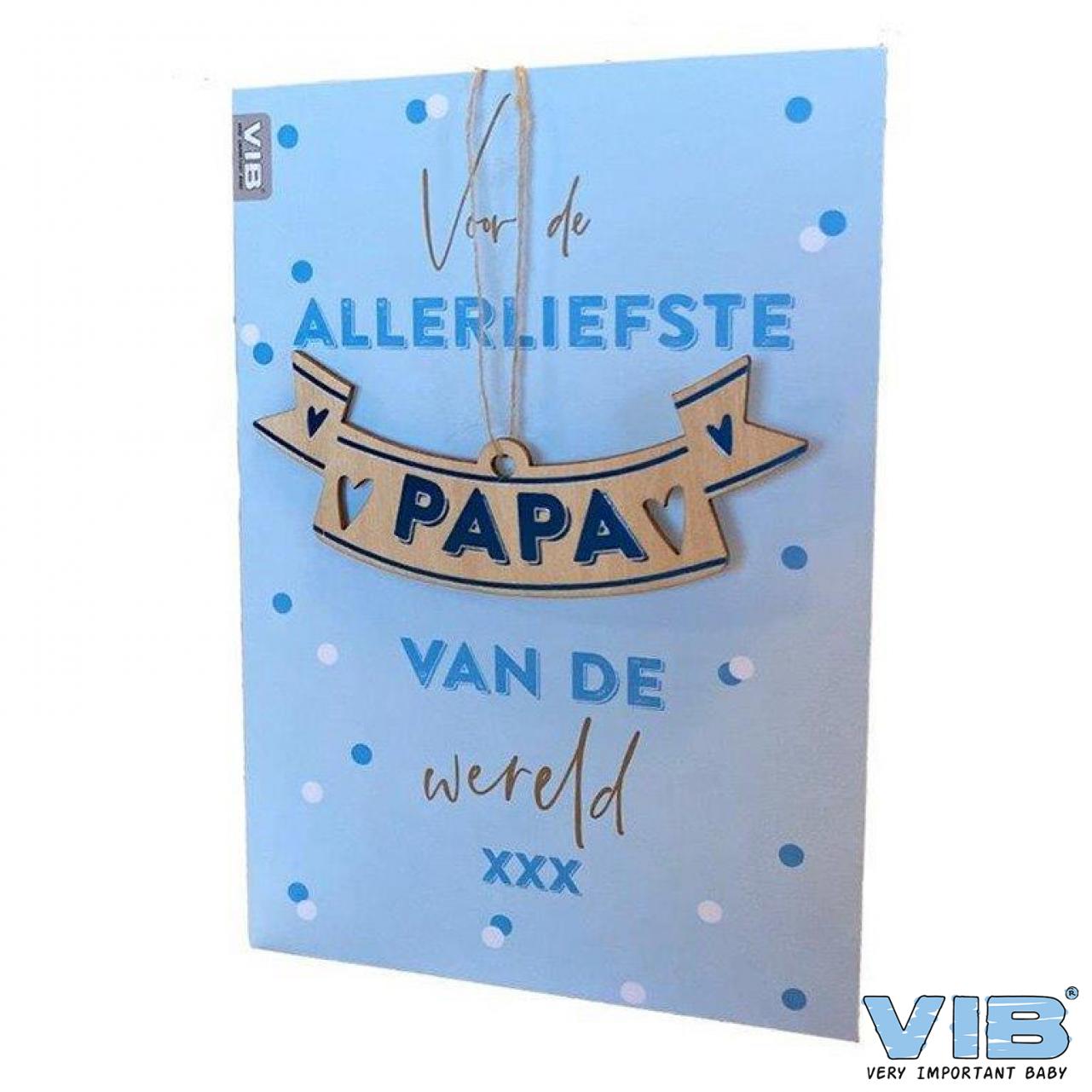 Wenskaart met Houten Hanger PAPA 'Allerliefste PAPA van de wereld' Blauw