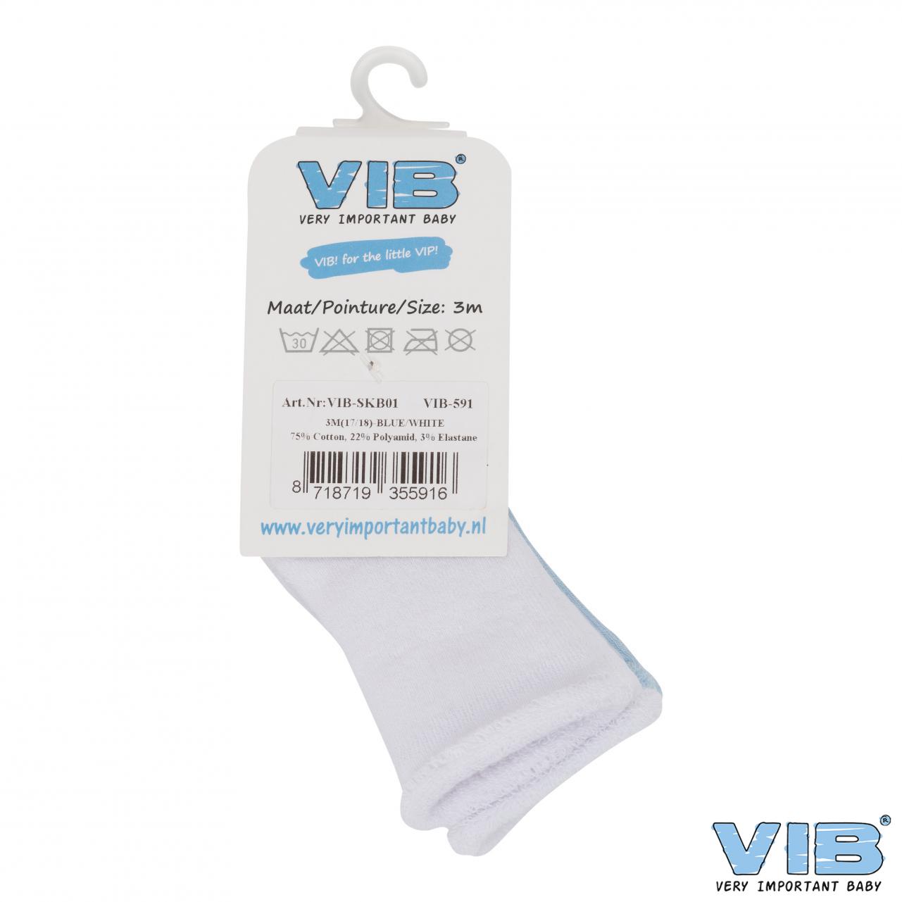 Baby Sokjes VIB BLAUW Set 3M(17/18): 1 paar Wit, 1 paar Blauw