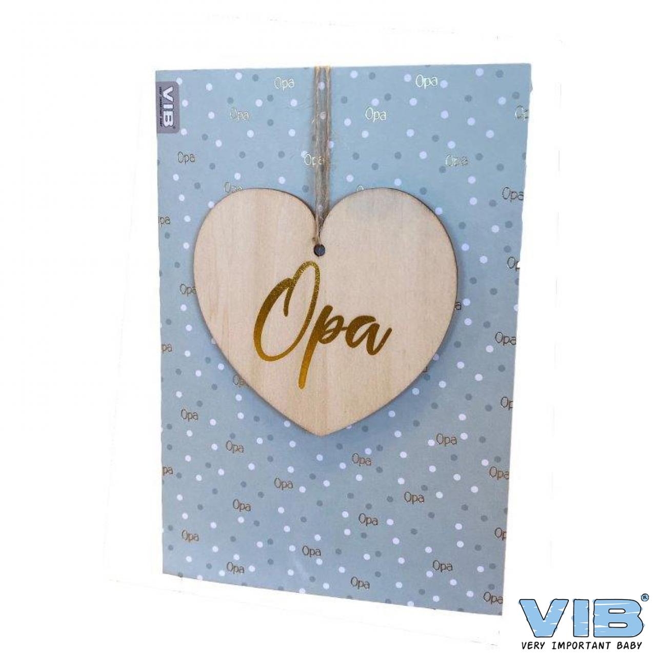 Wenskaart met Houten Hanger HART 'Opa' Mint-Wit-Goud