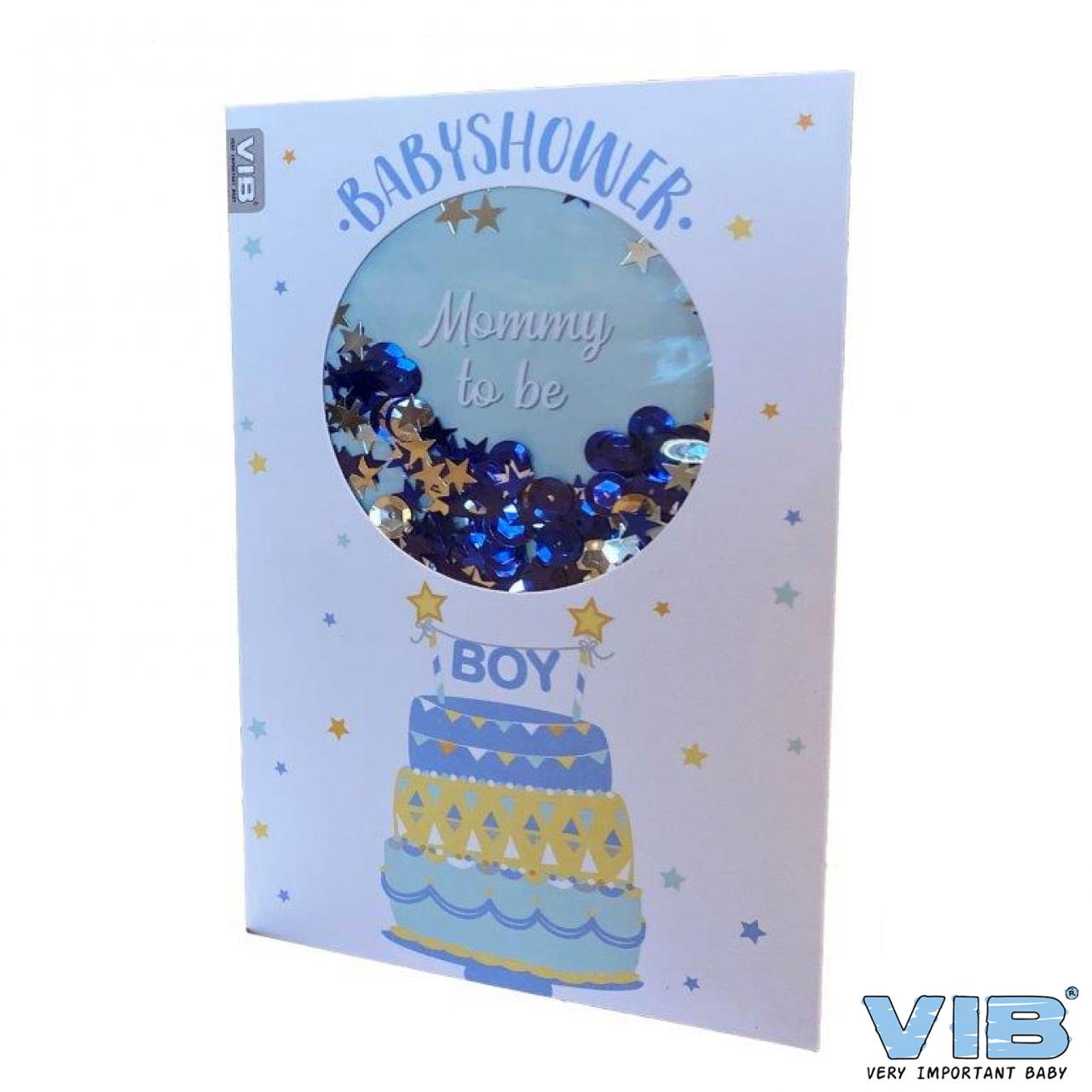 Wenskaart Schudbaar met pailleten Baby Shower BOY Blauw