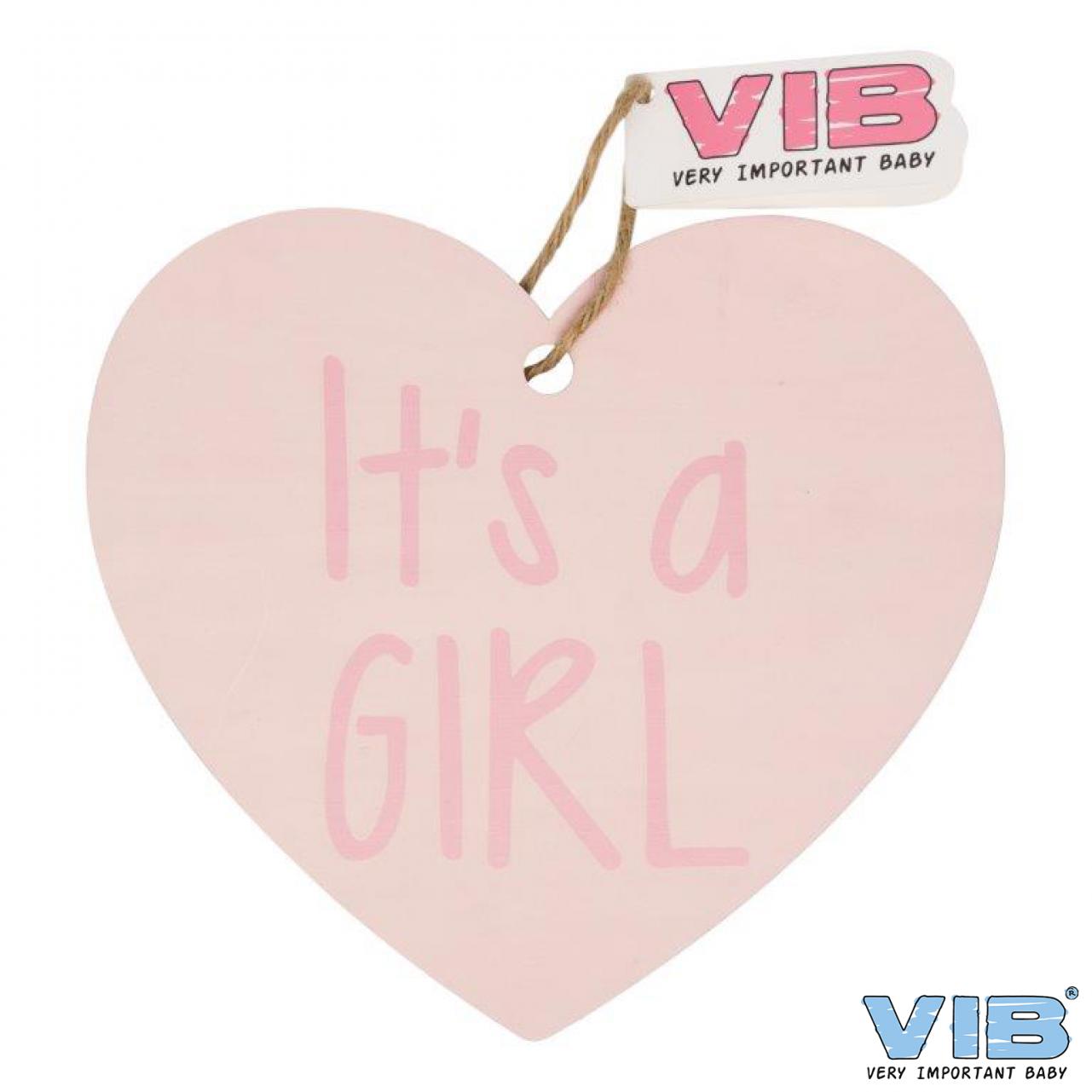Houten Bordjes Hart 'It's a GIRL' Roze