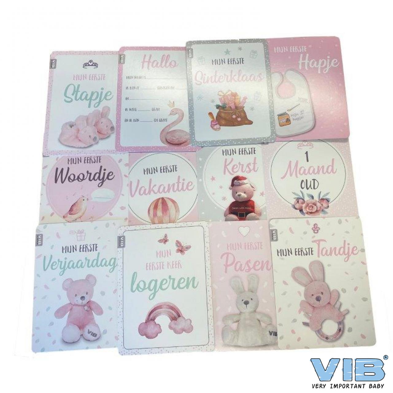 Box met 12 VIB® Baby Moments Cards 'Mijn Eerste Jaar' GIRL