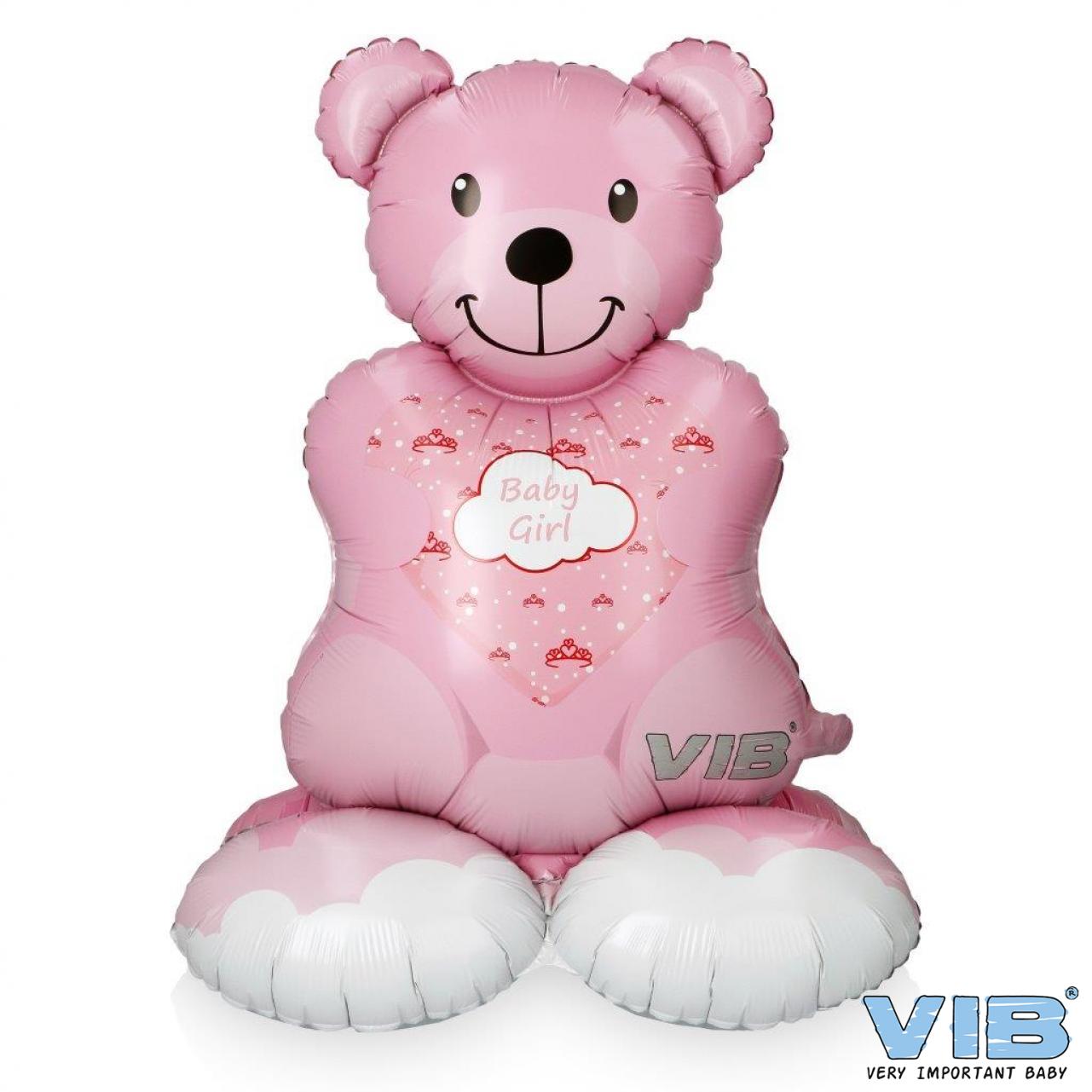 Foil Balloon Bear 89cm 'Baby Girl' Pink (self-standing and suitable for air)