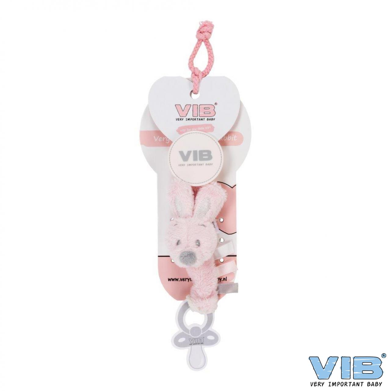 Lapin en Peluche Doudou Attache-Tétine Rose
