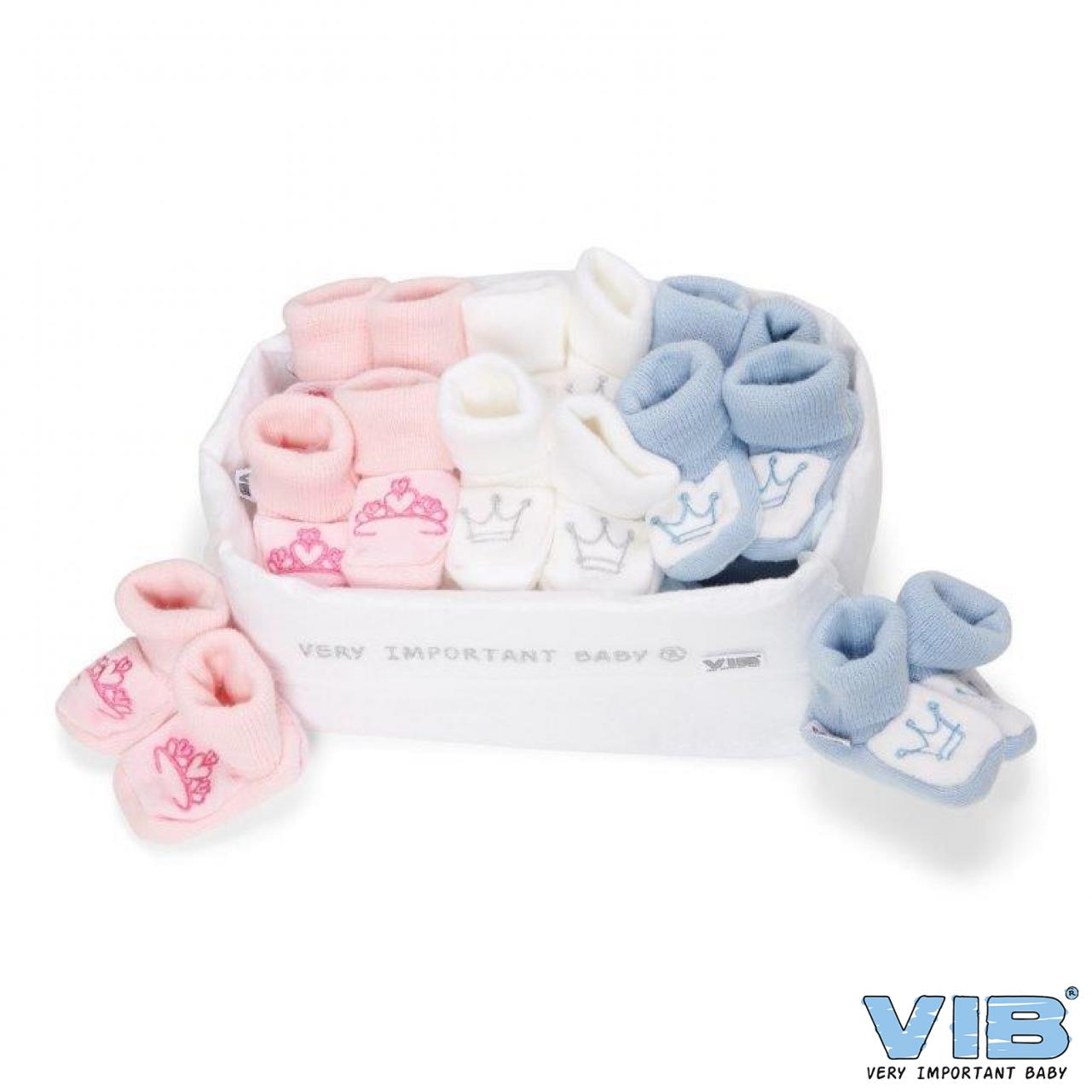 Dresser Basket for counter presentation filled with 18 CROWN Assorted Baby Shoes