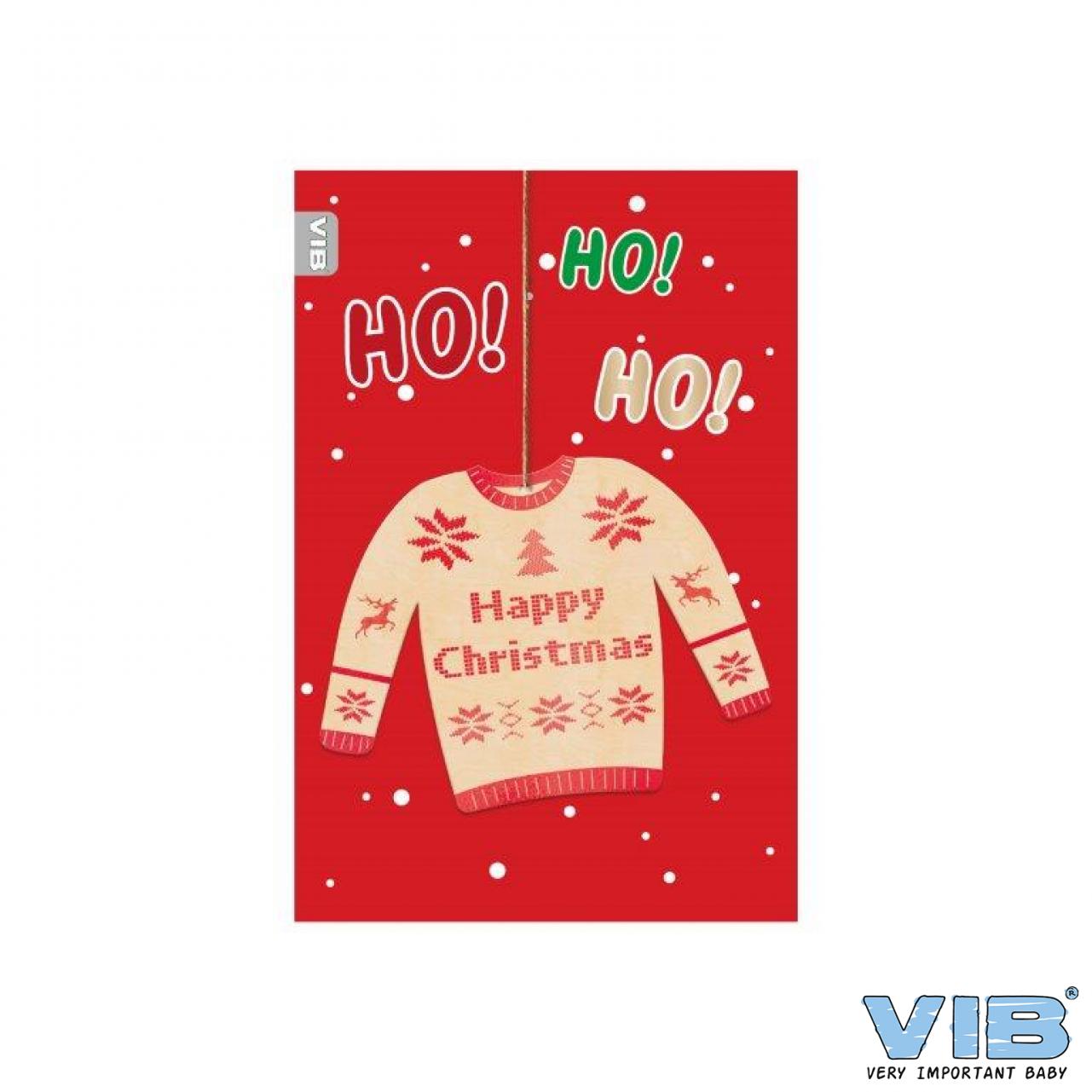 Greeting Card with Wooden Pendant CHRISTMAS SWEATER 'Happy Christmas' Red