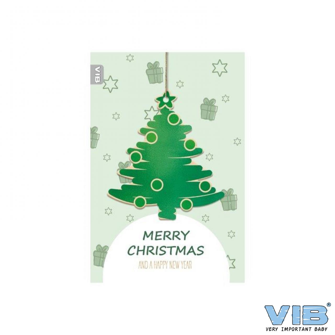 Wenskaart met Houten Hanger KERSTBOOM 'Merry Christmas and a Happy New Year' Groen