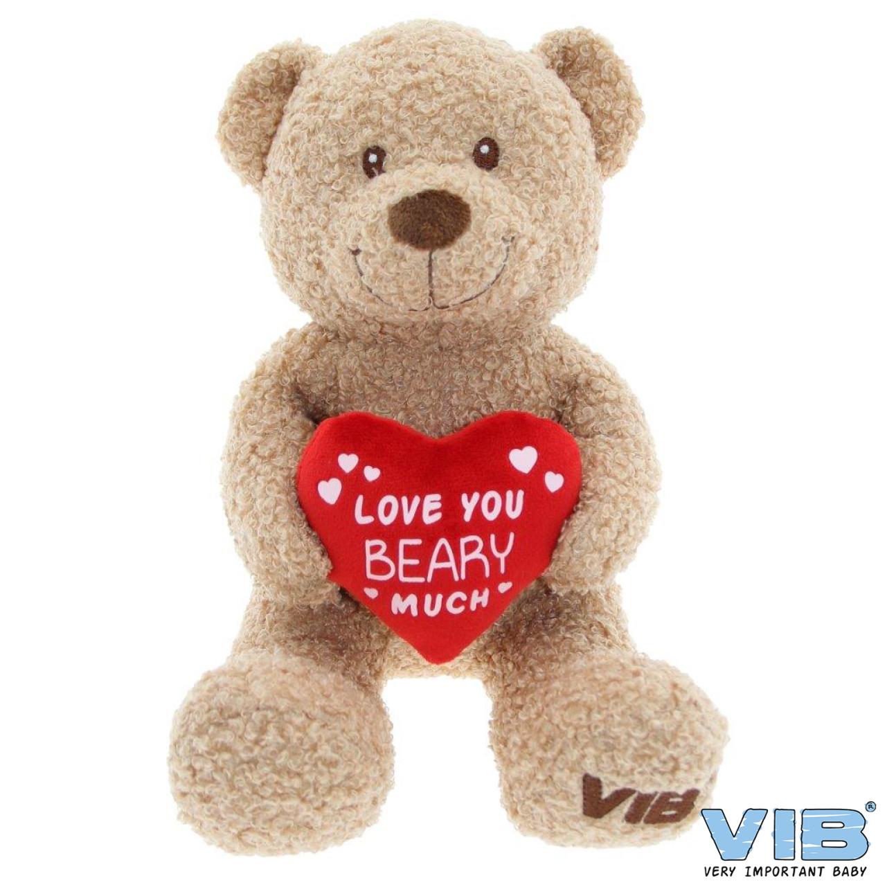 Plush Bear Sitting 35cm with Heart Teddy Beige