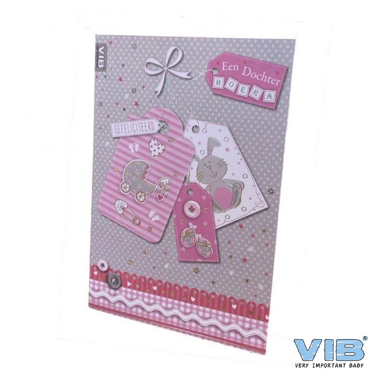 Wenskaart Folie 'Een Dochter HOERA - GEFELICITEERD' Roze