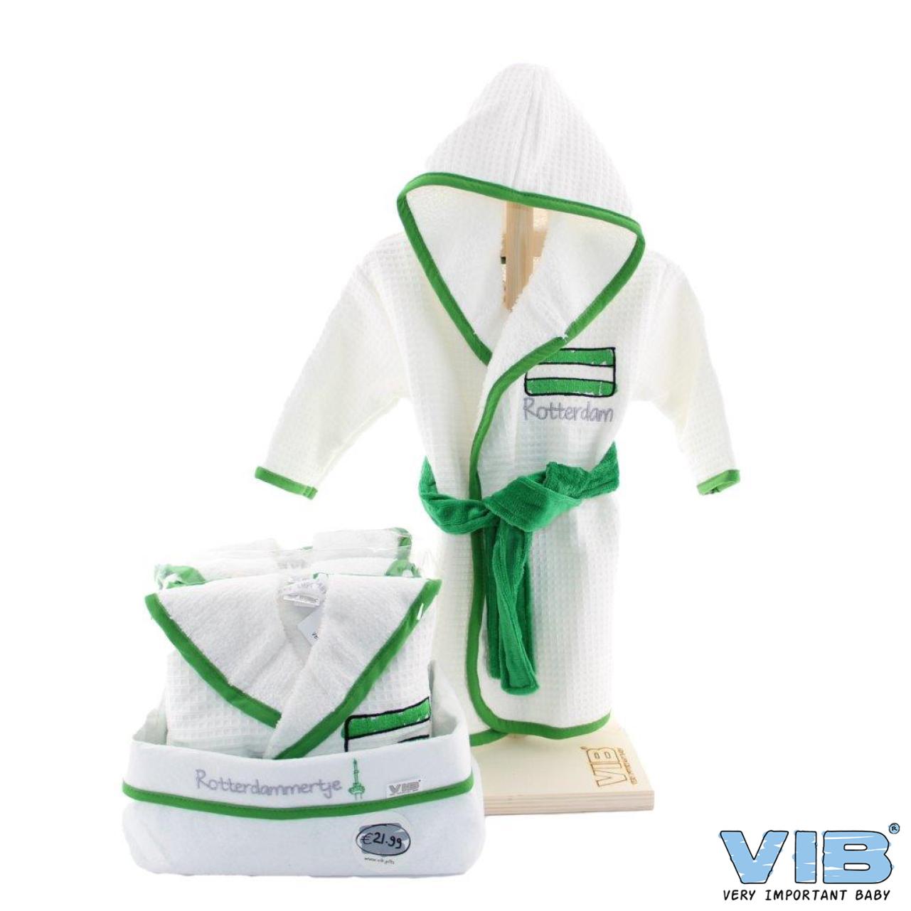 RDAM: Badjaspakket bestaande uit: 1x Badjasstandaard, 1x Commodemand, 4x Badjas Rotterdam Wit-Groen