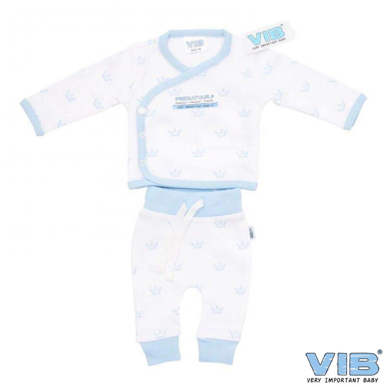 2-Delige Setje Prematuur All Over Print Kroontje Wit-Blauw
