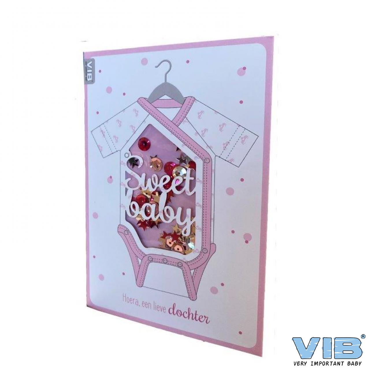 Wenskaart Schudbaar met pailleten Sweet Baby 'Hoera een lieve dochter' Roze